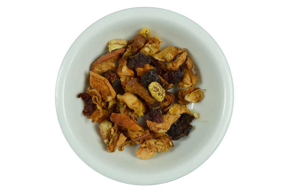This loose leaf fruit tea is a true highlight for ginger lovers. Who would have thought that apple and ginger could form such a perfect partnership? This blend features a large quantity of apple pieces combined with ginger pieces, with rosehip peel to add a fruity note. The result is a sparkling and aromatic drink, and an incomparable fruit tea blend.