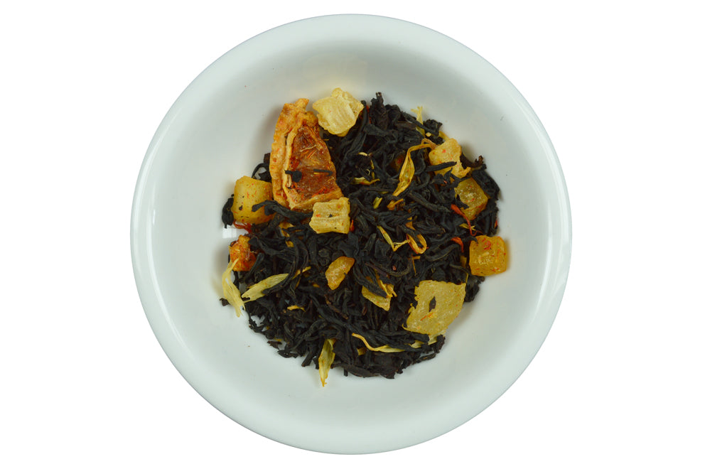 Dreams of long white sandy beaches, skies without a cloud. These are the images that come to mind when sipping this (low in acid) exotic fruit tea blend.