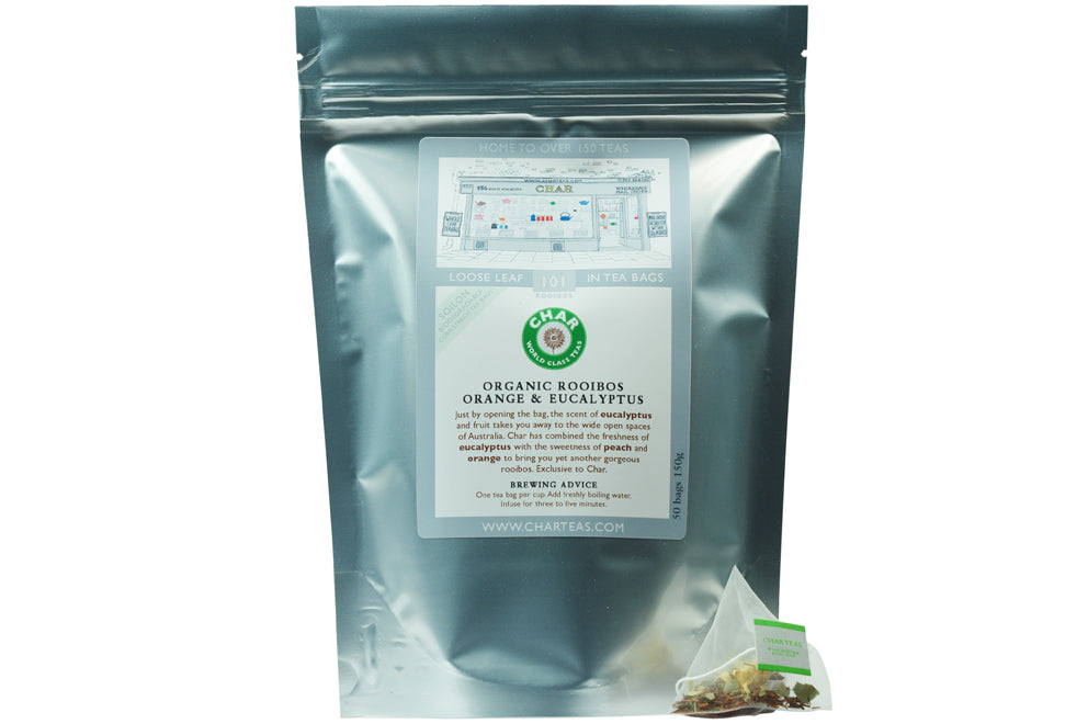 Just open a bag of our orange and eucalyptus rooibos tea and the scent of menthol and fruit will take you away to the wide open spaces of Australia. Char has combined the freshness of eucalyptus with the sweetness of peach and orange to bring you yet another gorgeous rooibos. A delicious way to clear the nose, throat and mind. Exclusive to Char.