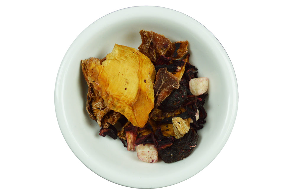 Keep summer alive with this very special fruit tea creation by Char. Bright yellow honeydew melon cubes and pineapple flakes invite you to eat them straight away. Mango and papaya pieces are accompanied by hibiscus and grape to make this brew truly sumptuous.