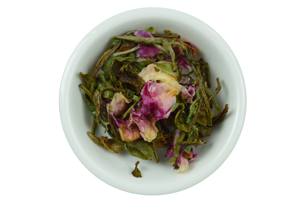 Discover our Winchester Evening Tea. This unique spring white peony (bai mu dan) tea has been blended with rosebuds to bring you a tea of distinction and delight. White peony is composed of the bud and two lower leaves. It comes from the Fujian province of China. Slow natural open-air drying makes this tea soothing and gentle. Rosebuds provide a perfume to complete the perfect Winchester evening.