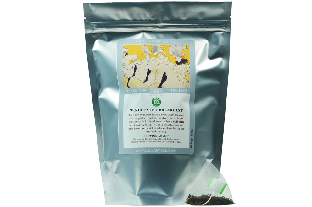 Buy Winchester Breakfast Pyramid Tea Bags to experience our own breakfast tea, a rich Assam TGFOP1 blended for the perfect start to the day. It has a full rich and malty taste, and is the best breakfast tea we have tasted yet - which is why we have given it the name of our city. This is probably the most popular tea we sell and is most suitable for hard water. You can enjoy Winchester Breakfast Tea with or without milk.