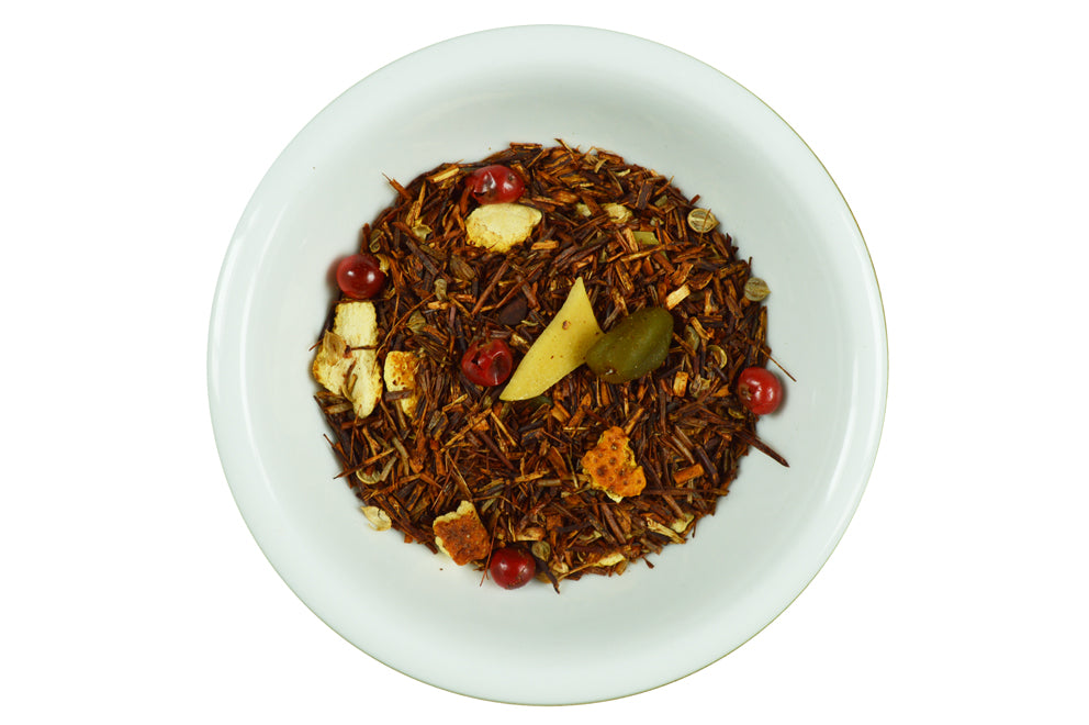 - Rooibos Gingerbread and Orange - a delicious spicy and lavishly decorated, appealing infusion to spoil everyone. Ingredients: rooibos, pineapple cubes, mango cubes, pineapple and mango flakes, orange slices, natural flavouring, freeze-dried tangerine and orange pieces, safflower, marigold blossoms, freeze-dried strawberry pieces.